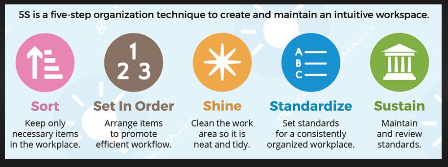 Lean is continuously looking to improve Safety, Quality, Productivity and Schedule. Each of these are core concepts for Lean Project. By assessing the work as it’s being done, removing the unnecessary, organizing the work and tools logically, keeping the area clean at its essences you are in fact being Lean. By tolerating anything less the project and project team will not operate at its full potential. So how do we utilize the 5 S’s to strengthen these principles.